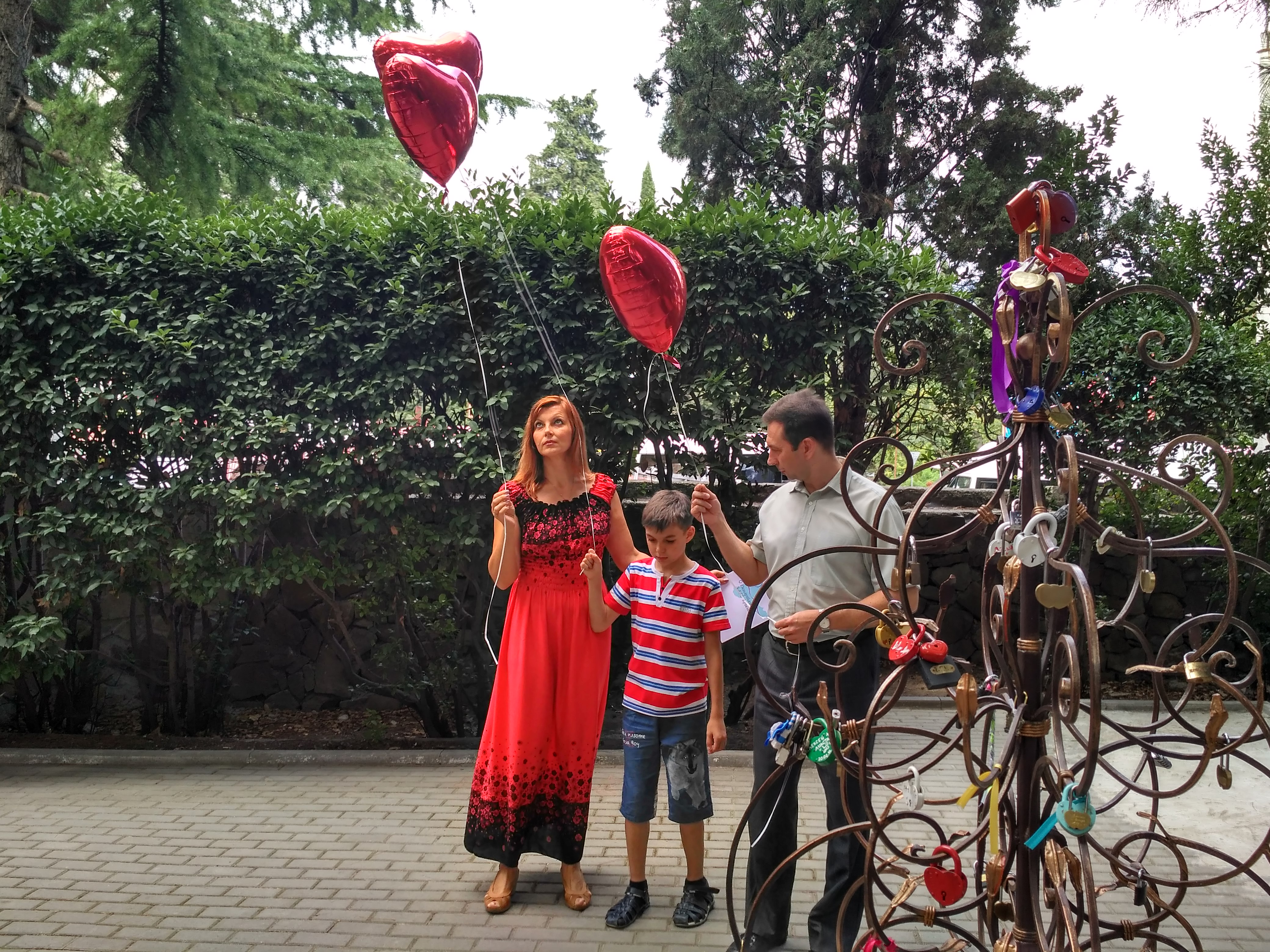 После церемонии семья Лисиных вместе со своим младшим сыном закрепили замок счастья и любви на дереве любви, расположенном в парке Ялтинского отдела ЗАГС и запустили в небо воздушные шары в виде сердец.