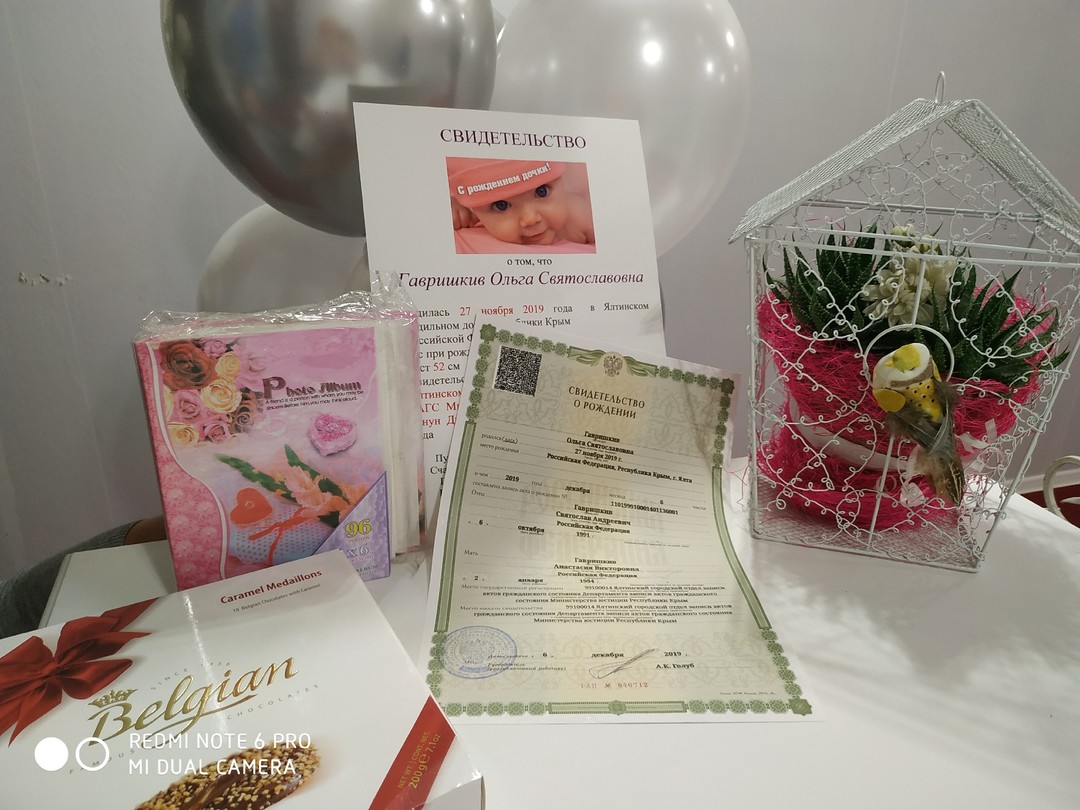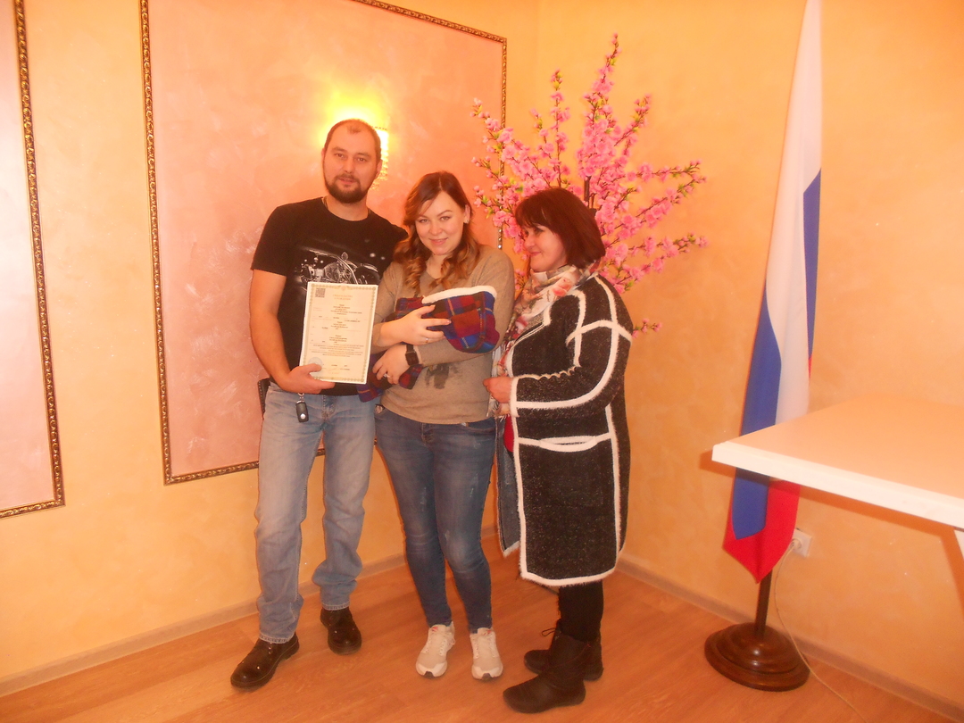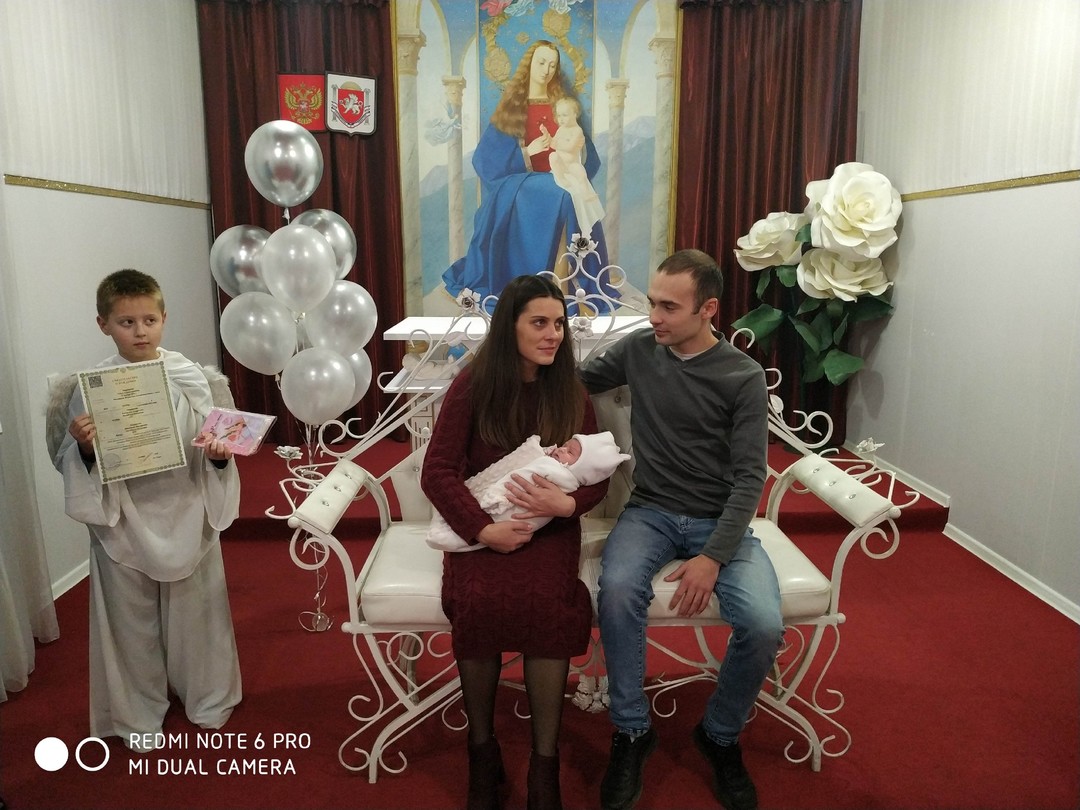 Отдел регистрации рождения города Симферополя в особой, торжественной обстановке вручил первый документ новорожденного Матвея его родителям Сергею и Кристине Журба.