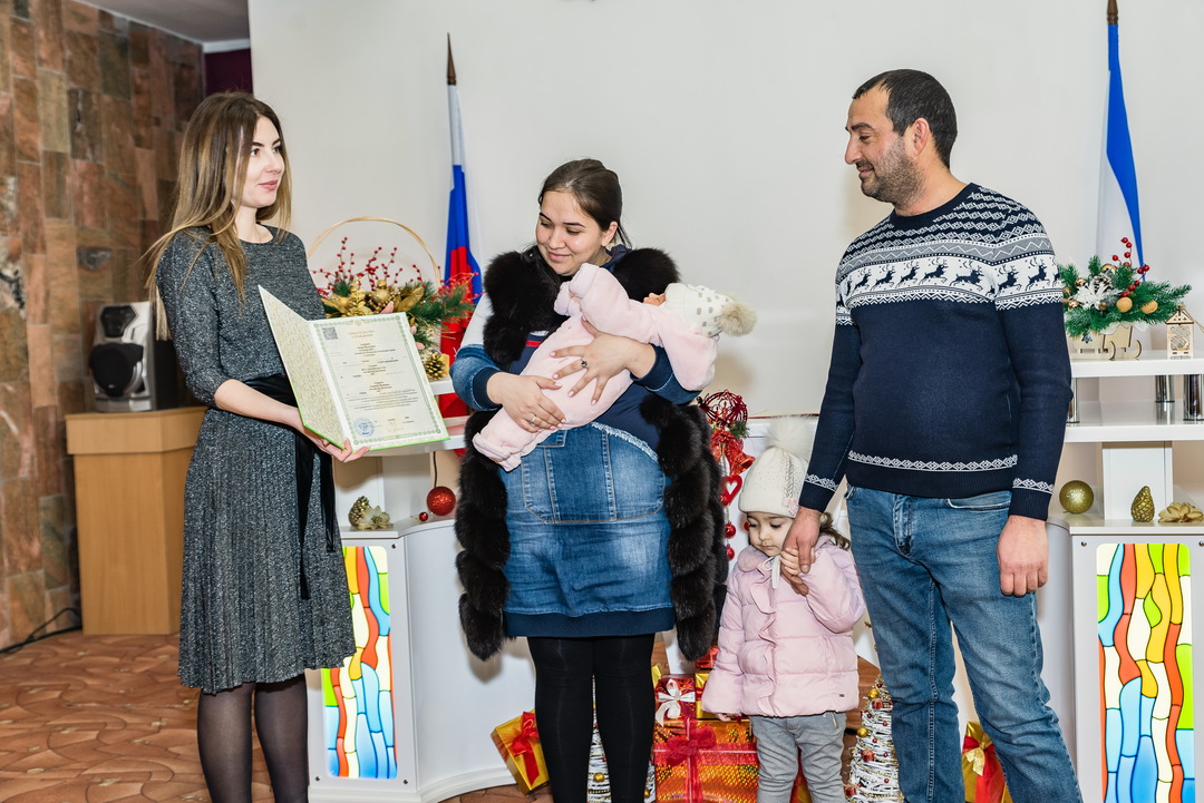 Молодым родителям, в ходе торжественного, запоминающегося мероприятия, вместе с самым первым документом – свидетельством о рождении, вручили и памятное свидетельство о том, что Василина является сотым ребёнком, рождение которой зарегистрировано в Ялтинском городском отделе ЗАГС, а также поздравительный адрес и полезные подарки.